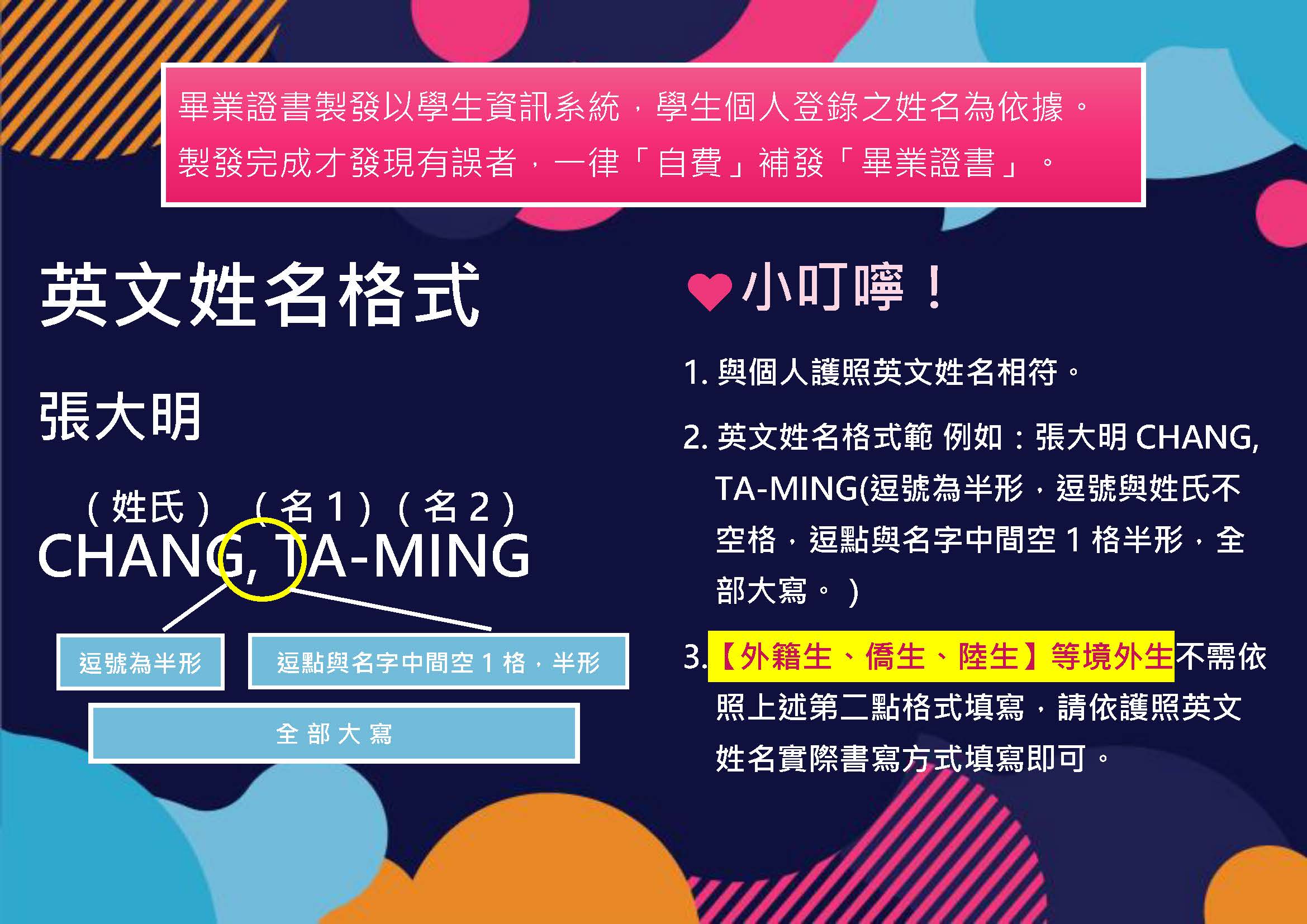 【應屆畢業生注意!!!】確認英文名字格式,以利畢業文件製作。