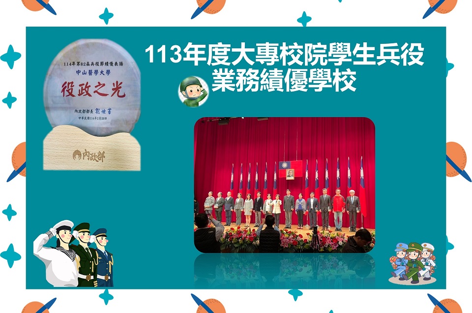 【獲獎公告】 本校學生事務處兵役業務榮獲「113年度大專校院學生兵役業務績優學校」。