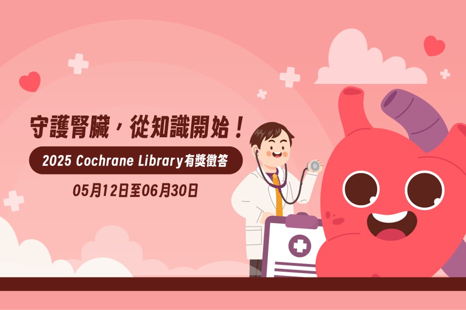 慢性腎臟病(Chronic Kidney Disease, CKD)全球與台灣的盛行率逐年攀升,已成為公共衛生重大議題。台灣的洗腎率更是世界前段班,對醫療資源形成沉重負擔。為降低CKD所帶來的健康風險,早期識別與積極預防管理成為關鍵策略。 為提升全民對腎臟健康的認識、建立正確的預防觀念,碩睿特別舉辦本場線上有獎徵答活動,內容依據國際知名的Cochrane Library 系統性文獻回顧設計,提供科學且實證為本的醫療資訊,讓大家在有趣互動中學習腎臟健康知識。 【活動日期】2025年5月12日至6月30日 【活動網站】https://www.sris.com.tw/Events/2025_Cochrane_Library/index.html 【活動內容】回答健康知識題目並填寫問卷