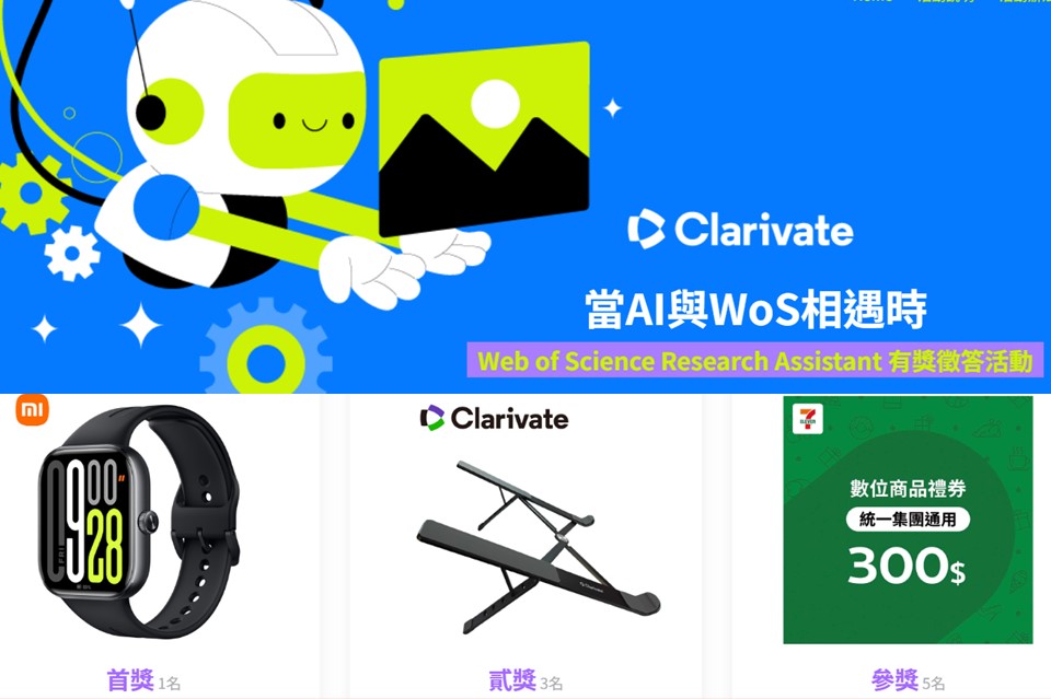 生成式AI工具已廣泛應用於生活中。Web of Science 生成式AI工具— Web of Science Research Assistant 已於2024年9月正式上線,並於2025年4月進行大幅度改版升級,提供研究人員便捷與更人性化、智能化的AI工具。 為提升使用者對資料庫之瞭解與操作運用,科睿唯安與碩睿資訊聯合舉辦有獎徵答活動!即日起至2025年7月31日止,歡迎現有訂戶與試用客戶參加。 本校院試用期:2025年6月2日至2025年7月30日 ~當AI與WoS相遇時~Web of Science Research Assistant有獎徵答活動 【活動時間】即日起~2025/07/31 (星期四) 【活動網站】https://www.sris.com.tw/Events/2025_WOSRA/index.html 【參加對象】全國大專校院、醫療機構、政府與研究機關之教職員工生。 【校院IP直接開啟Web of Science】https://webofscience.com 連線資料庫後,切換至Web of Science Research Assistant即可。 Upcoming! Web of Science Research Assistant 線上講座 《善用Web of Science Research Assistant讓AI助你走在學術前沿》 講座時間:2025/06/10(星期二) 14:00-15:00 報名網址:https://clarivatewebinars.webex.com/weblink/register/r05a4400a912d891d64a12ddcc5137707
