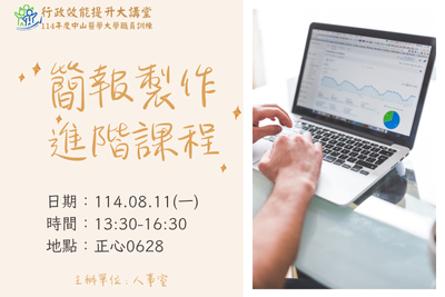 時間:114年8月11日(一)13:30-16:30 地點:正心樓0628教室 報名網址:https://moocs2.csmu.edu.tw/course/2911 認列職員訓練時數3小時,歡迎踴躍報名參加