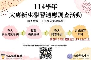 【TIRC計畫】114學年大專新生學習適應與滿意度調查開始