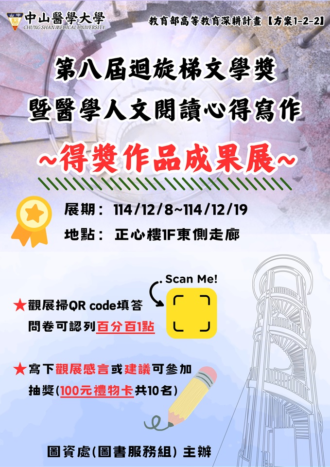 【歡迎觀展】第八屆迴旋梯文學獎暨醫學人文閱讀心得寫作[得獎作品成果展]